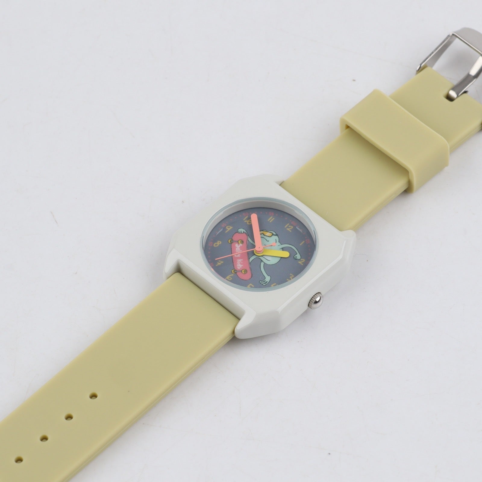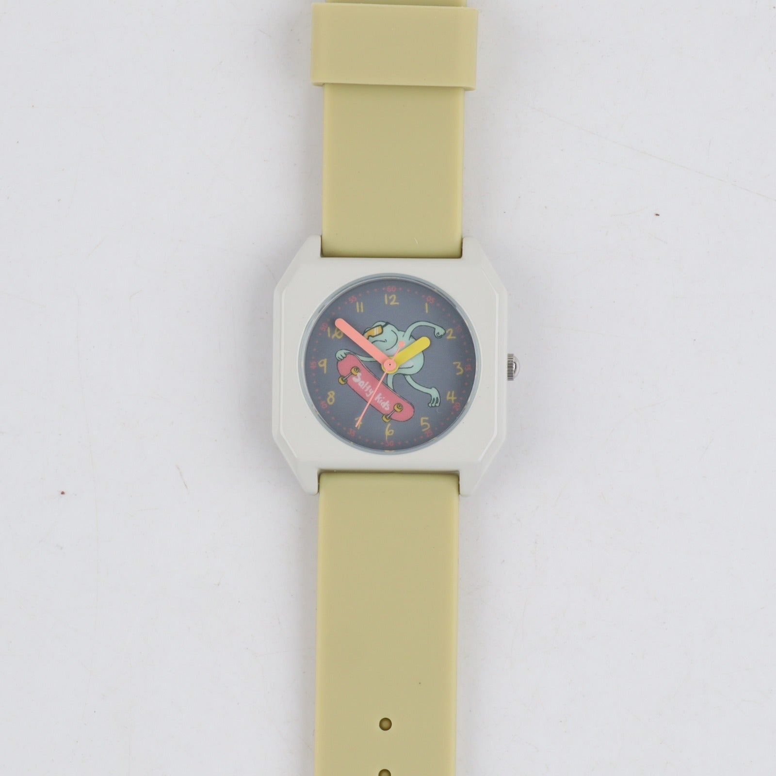 Envie d'un accessoire qui saute de joie avec votre enfant ? "La Froggy" est bien plus qu'une montre : c'est un petit compagnon fun et original pour affirmer son style unique. Avec sa grenouille skateboardeuse, elle apporte une touche de fantaisie au quotidien et l'accompagne dans toutes ses aventures.