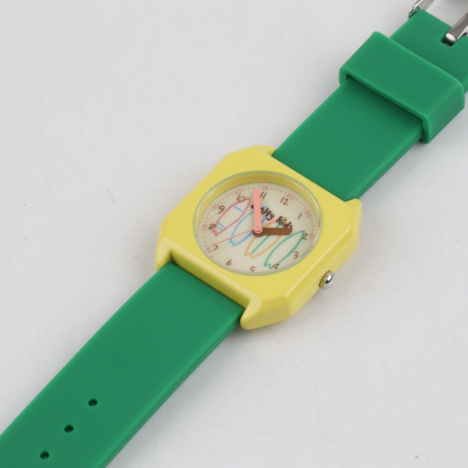 "La Wavy" est la montre idéale pour accompagner votre enfant dans ses découvertes. Son look d'été fun et ses couleurs dynamiques en font un accessoire tendance, tandis que son cadran intuitif facilite l'apprentissage de l'heure en douceur. Robuste pour toutes ses aventures, elle deviendra vite son indispensable compagnon.